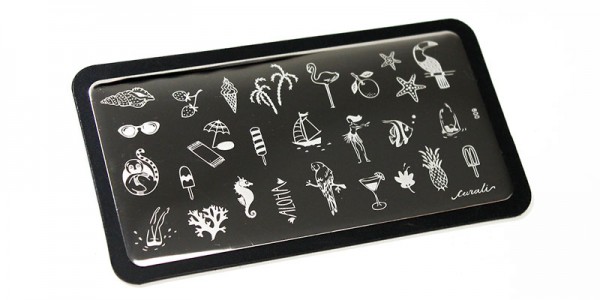 • Plate inspired by girly old school tattoos. Outlined in old style letters her body is filled with sugar skulls, daggers, lighthouse, dagger, gulls and much more.