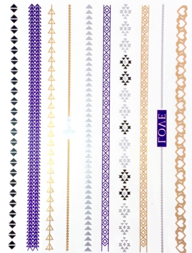 • 1 sheet of jewelry inspired gold and silver temporary tattoos can last up to 1 week depending on where they are placed and how well cared for.