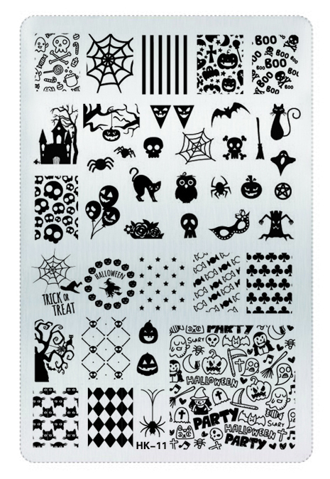 • Various Halloween designs nail stamping plate • Plate measures 9.5cm by 14.6cm • Be aware the edges of these plates are very sharp