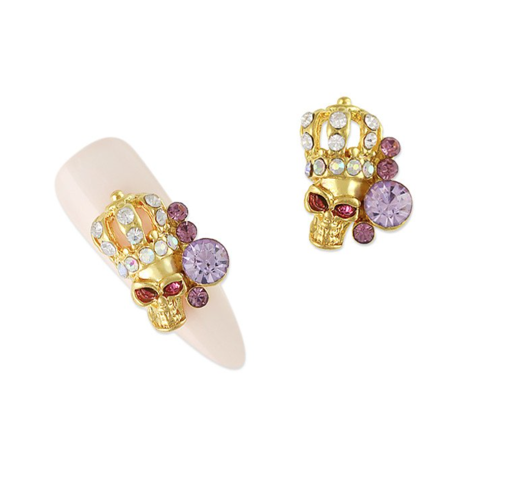 • These gold Skeleton King nail charms are the perfect accessories to your spooky manicure!